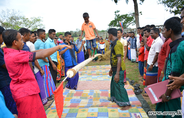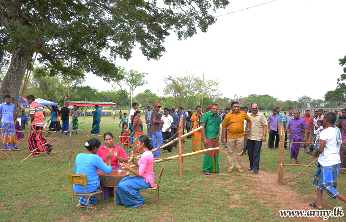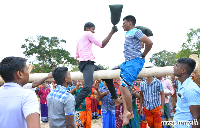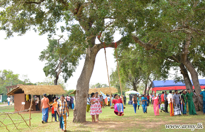 Construction of a model ‘Gemi Gedara’ (typical village house), erection of swings and the tea table with traditional sweetmeats remained a spectacle in the ground as officers, other ranks and their family members flocked to enjoy the day.
