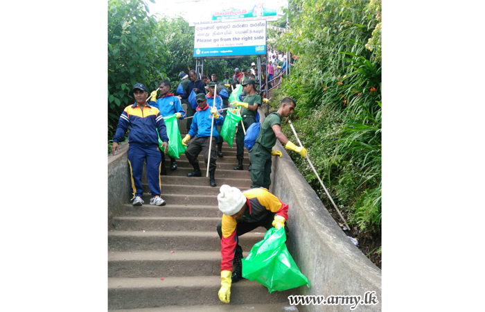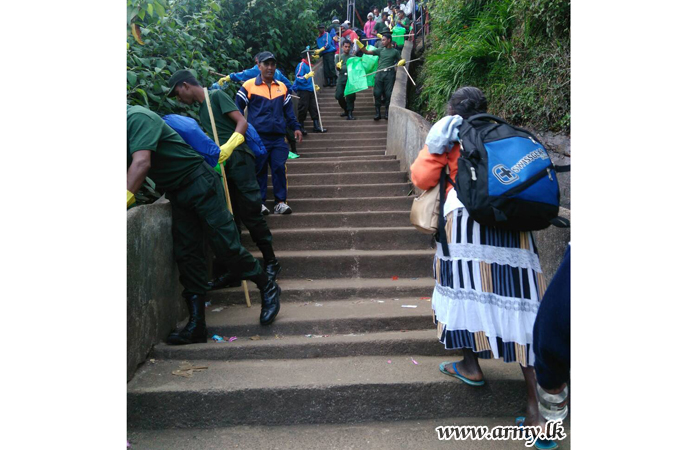 More than 50 Army personnel including 3 Officers of the 19 SLNG, together with members of the Central Province government authorities, Civil Security Department officers and pilgrims joined hands together with one another to make the project a success.