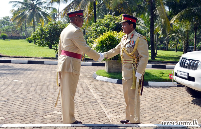 The newly-appointed Deputy Chief of Staff (DCOS) of the Sri Lanka Army, Major General Ajith Kariyakarawana upon his assumption of new office at the Army Headquarters made his first courtesy visit to his mother regiment, Vijayabahu Infantry Regiment (VIR) Headquarters at Boyagane on Friday (27).