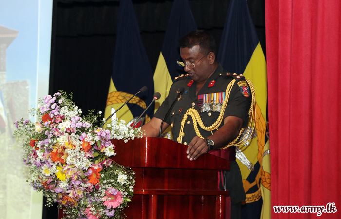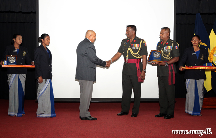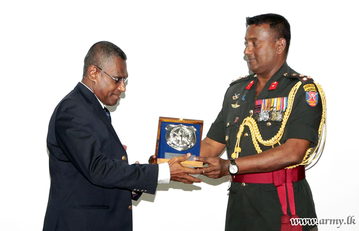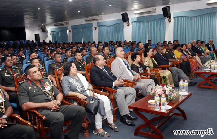 At the entrance to the auditorium SLMA Commandant, Brigadier Priyantha Senaratne together with his spouse welcomed the day’s invitees and presented them with special mementos adding more importance to the day’s itinerary.