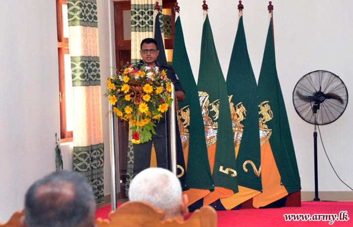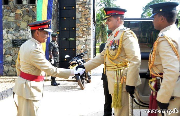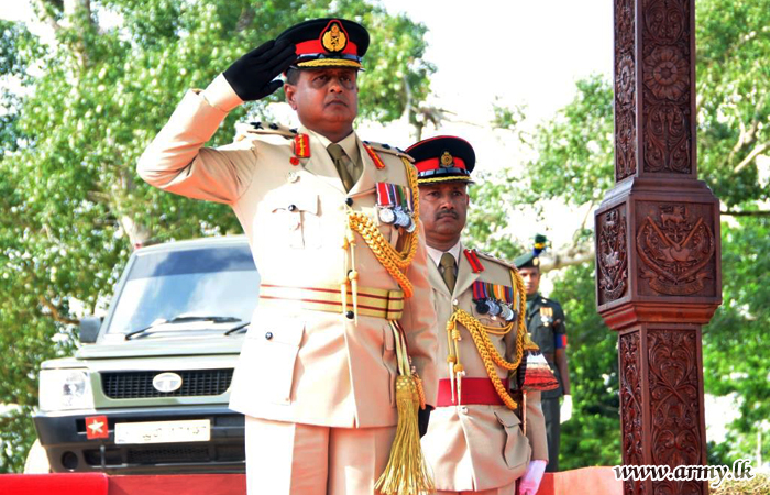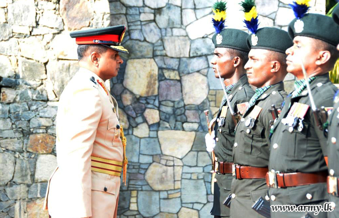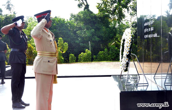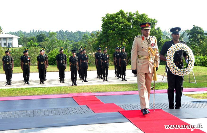 Afterwards, Major General Rajaguru laid floral wreaths at the war monument for fallen War Heroes and recalled their sacrifices. A subsequent Guard of Honour saluted the new appointee in the parade ground after he was invited to review the parade.