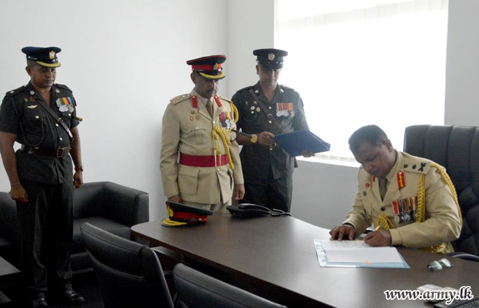 Afterwards, Major General Rajaguru formally placed his signature in an official document and signified the acceptance of the new office before he addressed All Ranks in the camp. An All Rank tea-table at the MIC Regimental Centre enabled him to share a couple of views with All Ranks.
