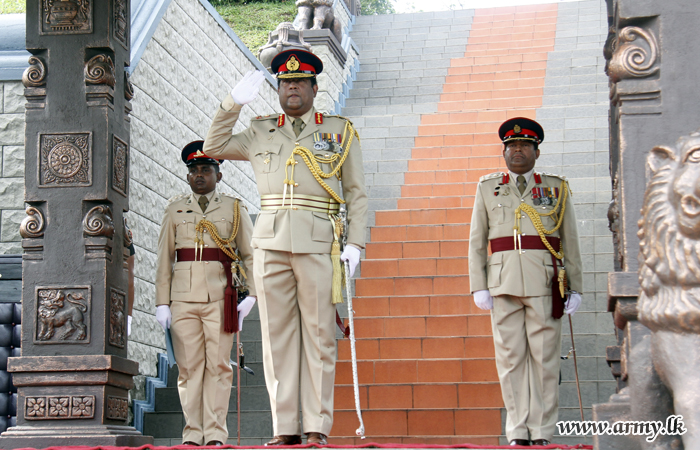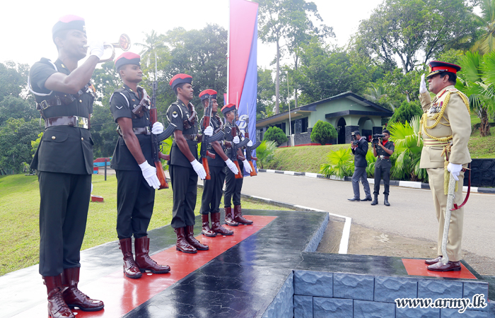 At the outset, he revered the memory of fallen War Heroes of the regiment by laying a floral wreath at the Regimental Monument expressing his utmost concern towards them. Then, he reviewed the Guard Turn Out, presented by SLA troops at the entrance and accepted the regimental salute, accorded by members of the Regiment in a parade that followed with Regimental Colours.