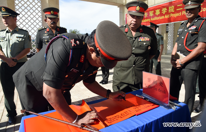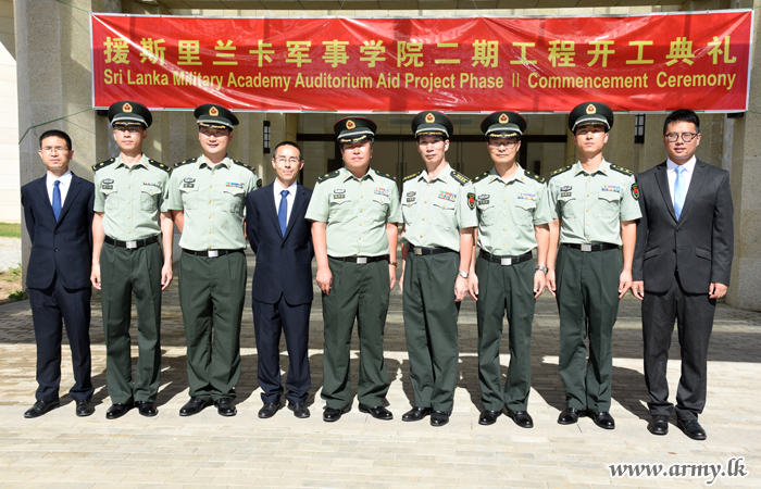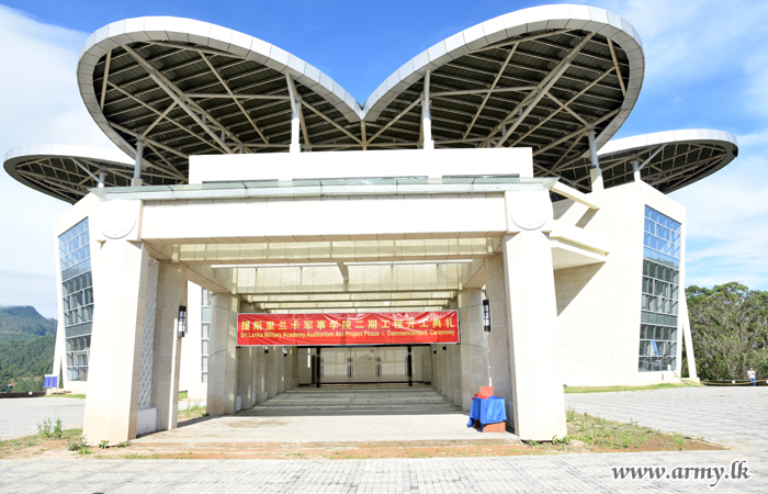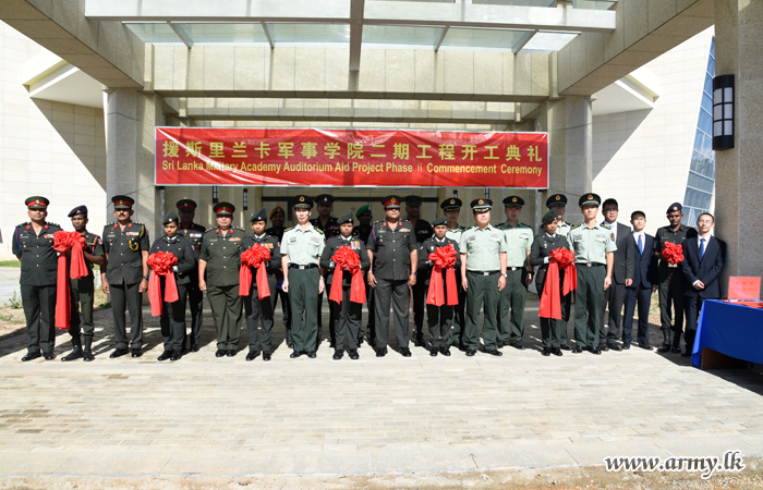 A simple ceremony in accordance with Chinese traditions marked the inauguration of the construction phase II of the Chinese-funded new auditorium complex at Sri Lanka Military Academy (SLMA) on Tuesday (8).