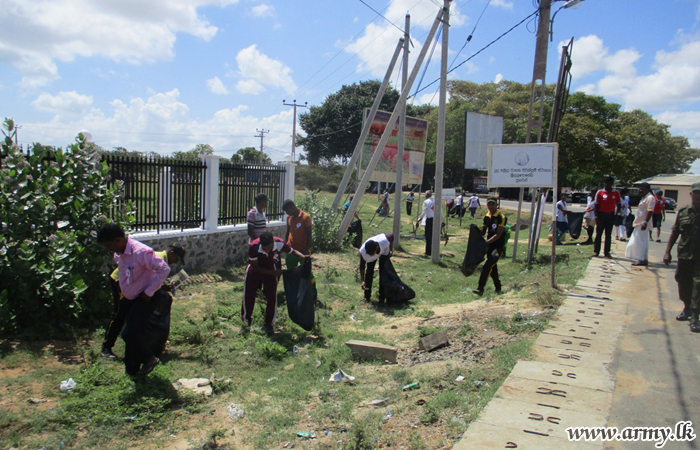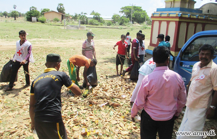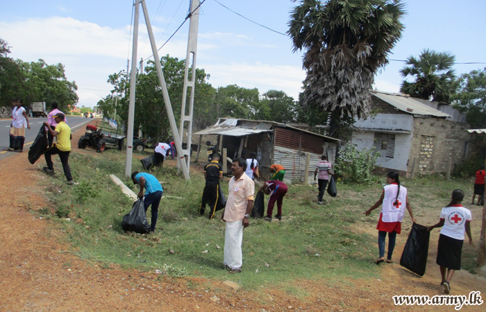 Troops voluntarily cleaned the surroundings in the Pooneryn hospital and Pooneryn town area during the Shrmadana campaign.