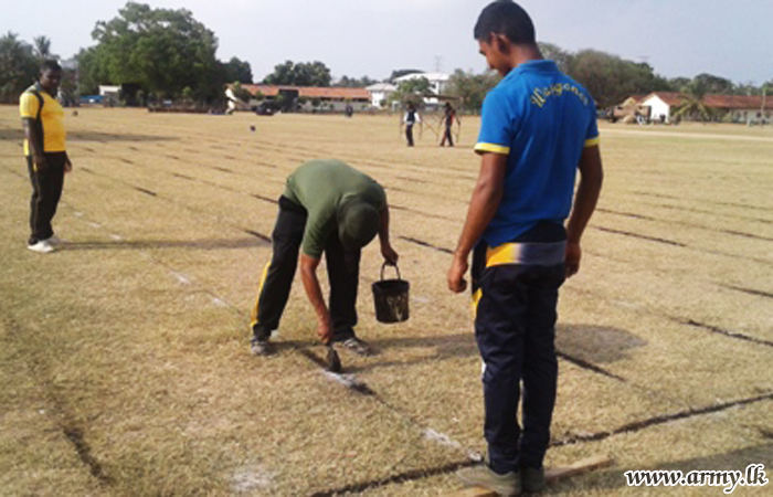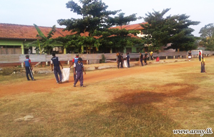 Troops of the 57 Division extended their assistance to clean and make the Kilinochchi Central College Ground for the Athletic meet on 01 May 2018 under the direction of Commander, Security Forces - Kilinochchi, Major General Niyshshanka Ranawana.