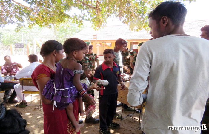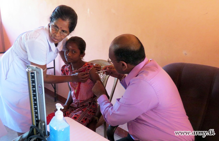 19(V) Gajaba Regiment and 2 Sri Lanka National Guard (SLNG) troops of the 663 Brigade actively made preparations for conduct of the mobile clinic which examined 132 students and civilians in the area.