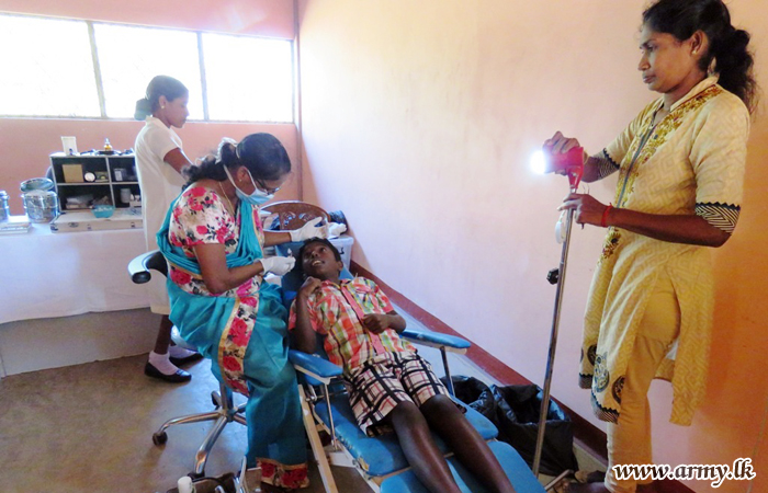 66 Division Headquarters under the Security Force Headquarters - Kilinochchi initiated and coordinated the conduct of a mobile dental clinic for poor civilians in Veravil area, Kilinochchi at Veravil Hindu College on Saturday (12) as one more community project of the troops.