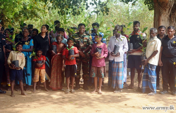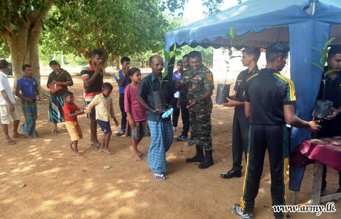 The project to be in line with 'Api Wawamu - Rata Nagamu' national drive was meant to assist uplift living standards of 275 families in the area who have space for plantations since those plants would bear fruits during a short span of time. Earlier too, a few more such distributions of plants of economic value took place in several other areas of the SFHQ-KLN.
