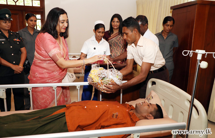 The separate agenda that went into action on Monday (14) on behalf of the visiting India's Chief of Army Staff, General Bipin Rawat's spouse, Mrs Madhulika Rawat, included a visit to the Mihindu Seth Medura (MSM) at Attidiya where a group of permanently dependent War Heroes are housed for the rest of their lives.