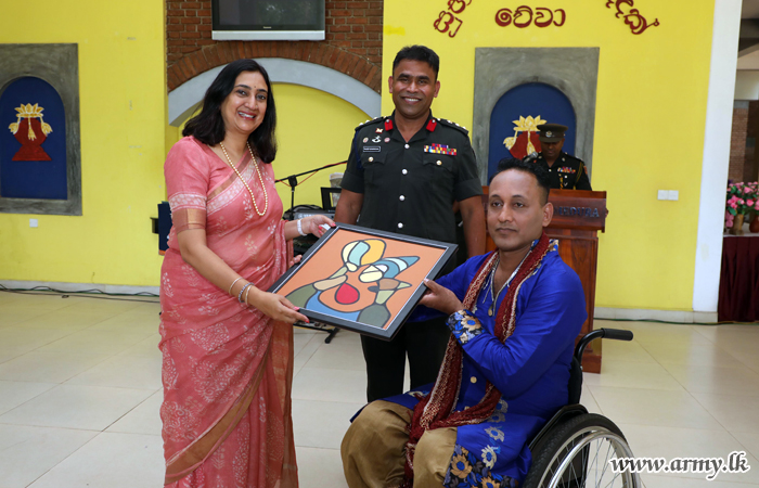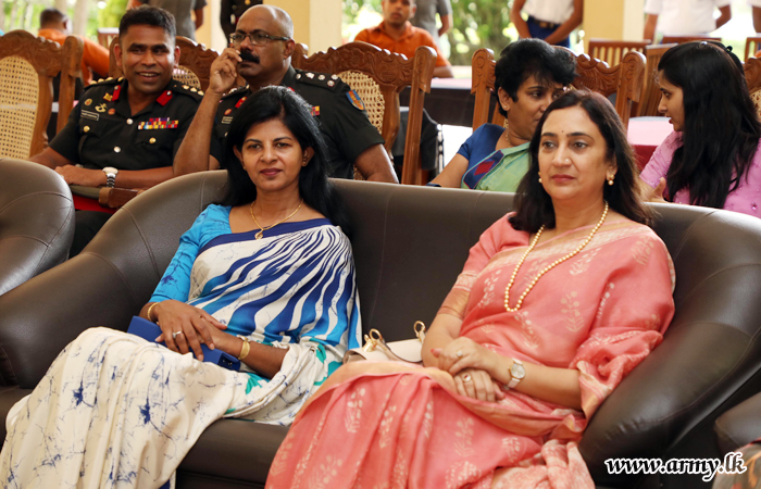 Mrs Anuja Kariyakarawana of the Army Seva Vanitha Unit received Mrs Madhulika Rawat, the Chief Guest for the day with offer of a floral bouquet in the company of several ASVU senior members, Brigadier Shantha Thirunavukarasu, Director Rehabilitation and Colonel Nandana Gunawardana, Commandant, ‘Mihindu Seth Medura’.
