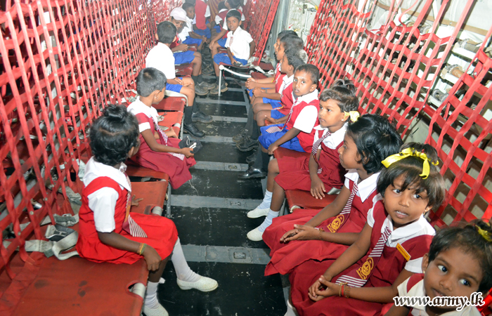Forty seven kids in Tholpuram Central 'Praja Shakthi' pre-school and Kadduwan 'Durga' pre-school, along with their parents and teachers, enjoyed a visit to the Jaffna Palaly Airport as a part of their annual educational tour on Friday (18).