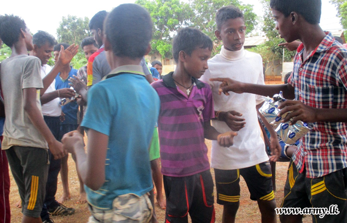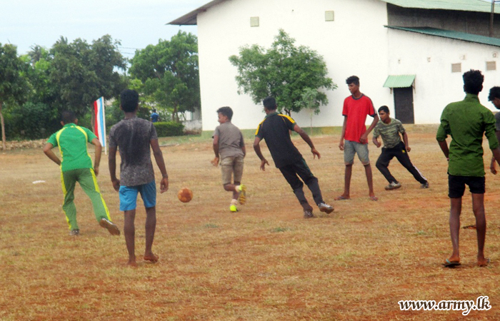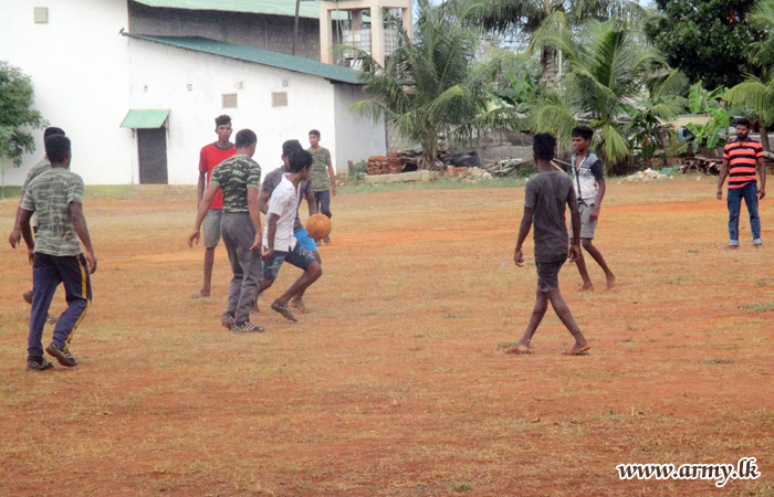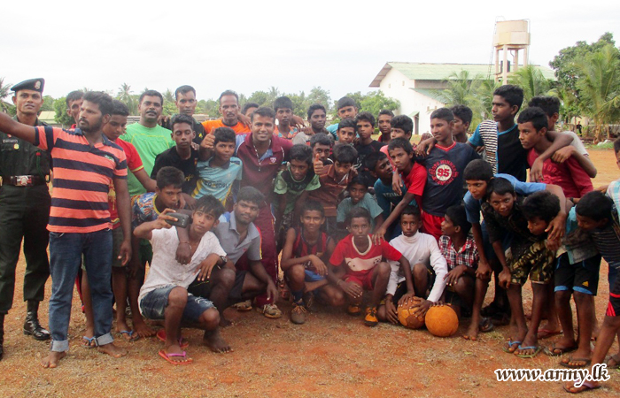 Many of the youngsters in the area joined hands together with members of the armed forces to play soccer with them and enjoyed a pleasant day as on other days.