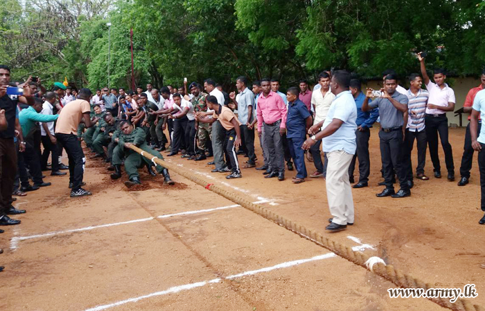 Cricket and volleyball matches among trainees and a tug of war were held and gifts were distributed among the winners before a Bodhi Pooja pinkama got underway with the participation of Officers and Other Rankers. Towards the end of the day's anniversary itinerary, all ranks joined for a musical evening after an all rank lunch at the Warrant Officers’ and Sergeants’ Mess for Other Rankers.