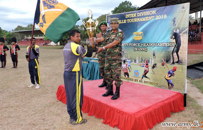 The final encounter got off between 62 Division and 56 Division players. After a stiff completion, 56 Division players emerged victorious. Certificates and trophies were awarded by Brigadier Prabath Dematanpitiya, General Officer Commanding, 56 Division on behalf of the Wanni Commander.