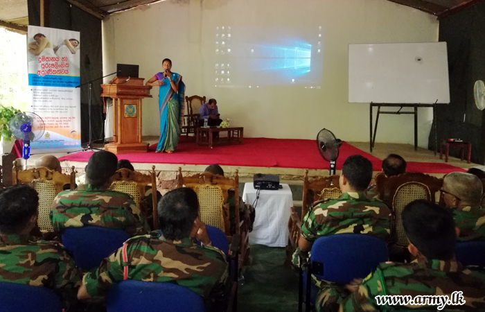 A lecture on ‘Drug Addiction and Prevention’ organized by the 62 Division Headquarters on the directions of the Commander, Security Forces - Wanni got underway at Battalion Training School, Kalyanipura on Monday (14).