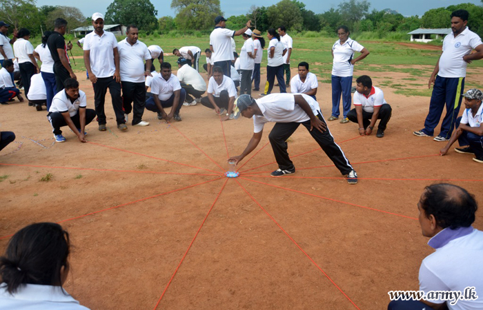A training workshop on ‘Leadership Abilities and Positive Attitudes’ for officials in Municipal Councils and Urban Councils was conducted concurrently by Army Officers at Diyatalawa Marksmanship and Sniper Training School, Diyatalawa Volunteer Force Training School, Kalaththewa Armoured Corps Training Centre, Minneriya School of Artillery, Embilipitiya Sri Lanka Army Engineers' Training school and Pangolla 5 Sri Lanka Armoured Corps during May 14-18 at those respective places.