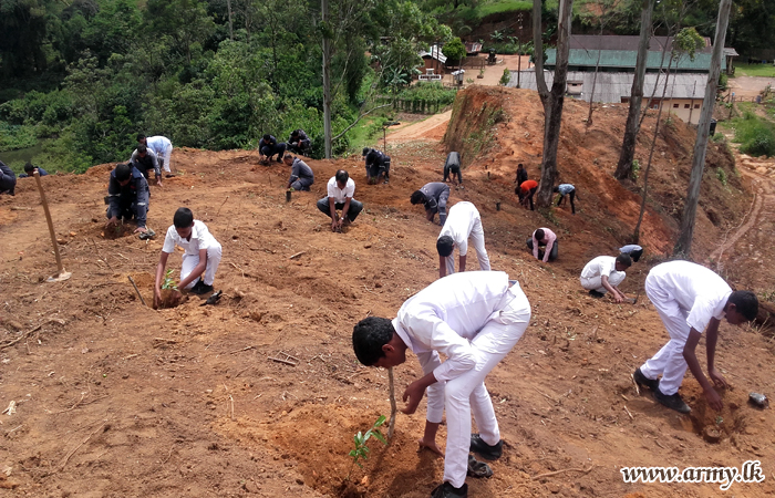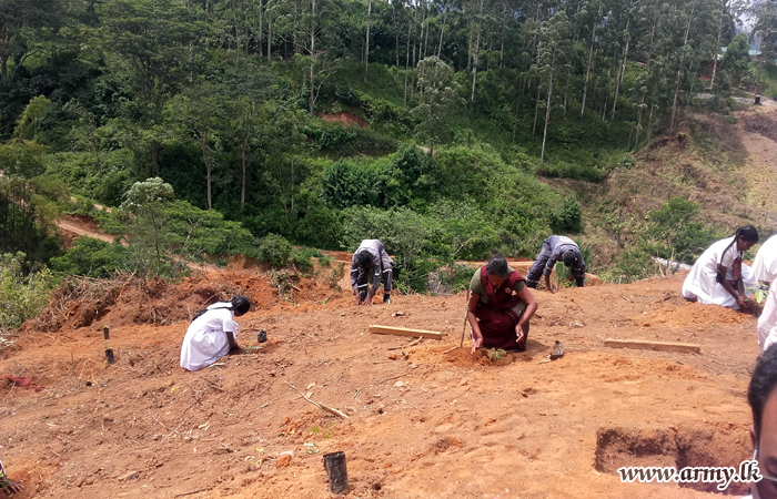 Brigadier Buwaneka Gunarathna, Director, Agriculture and Livestock, representing the Army, officials of Maussakele Hydro Power plant and school students in the area participated in the event and planted those 300 saplings.