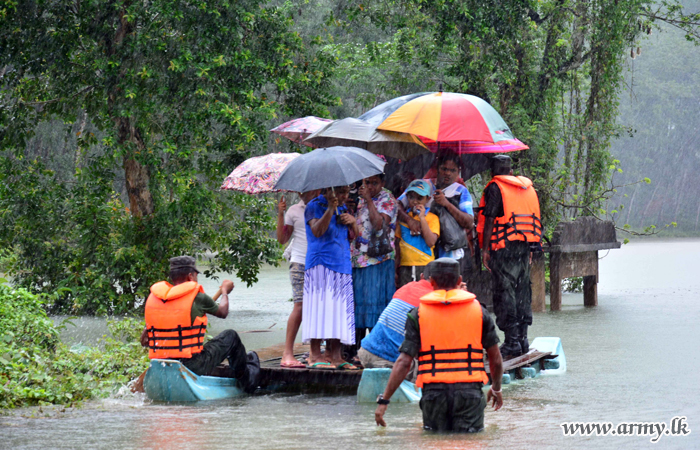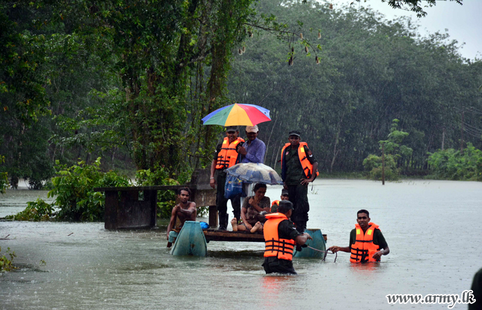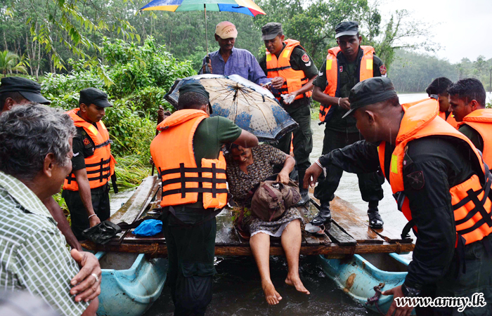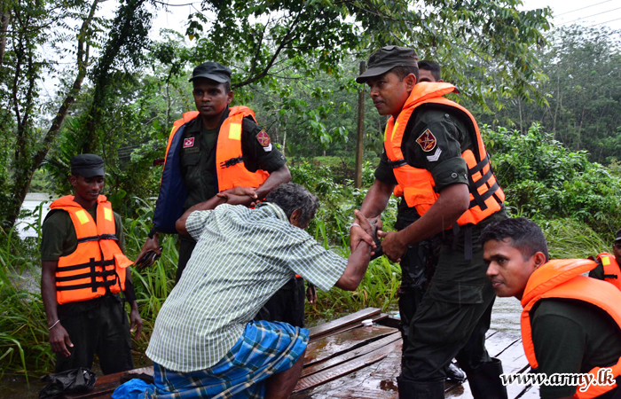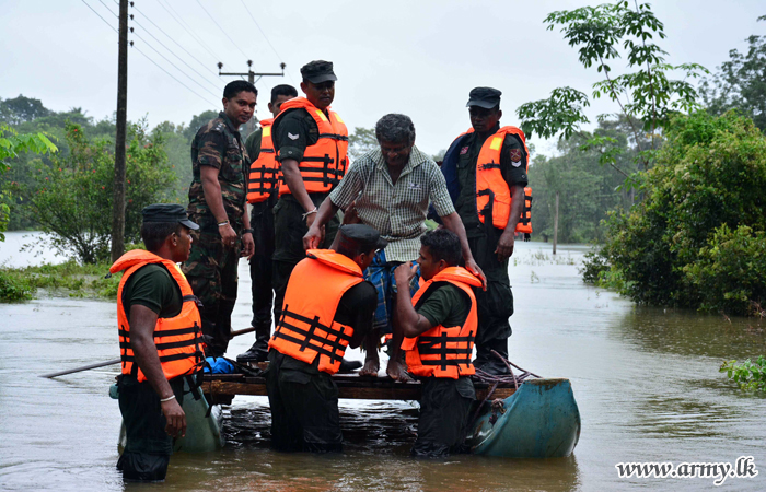 Troops of the 9 Gemunu Watch serving the 582 Brigade of the 58 Division of the Security Force Headquarters- West (SFHQ-West) continued providing all emergency needs to flood-affected civilians in Molkawa in Bulathsinhala area and the outskirts on Thursday (24).