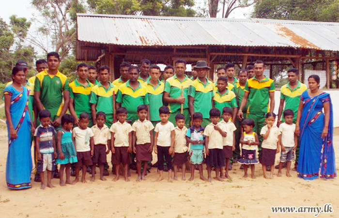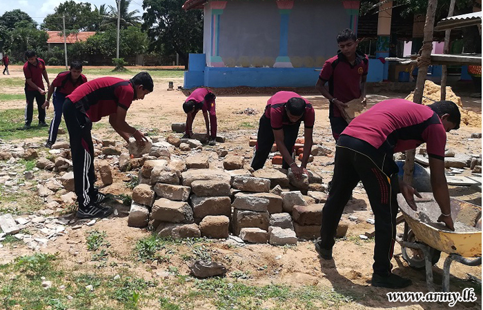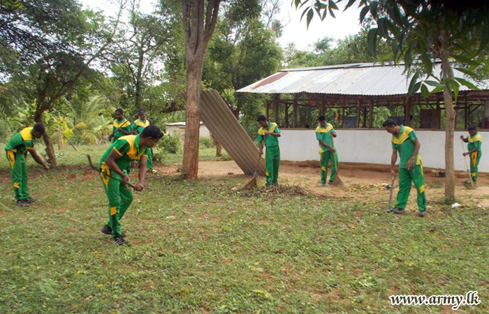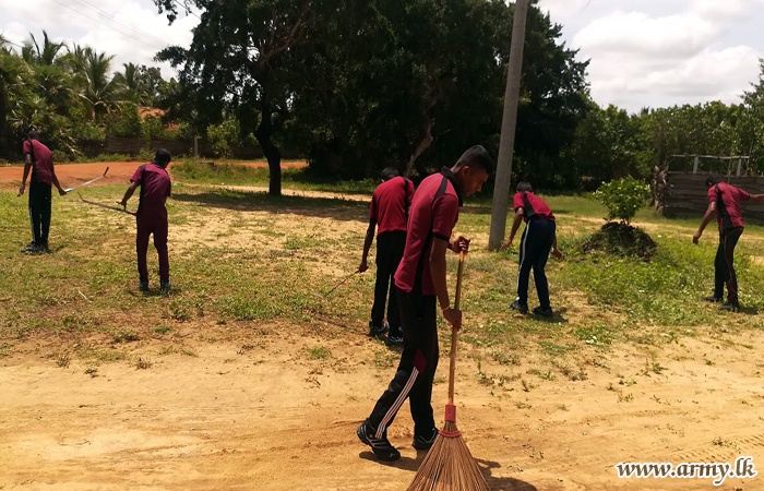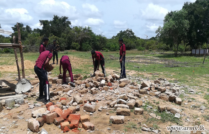 11 (V) Gajaba Regiment troops of the 651 Brigade organized a 'Shramadana' campaign to clean and beautify the Mulankavil Kaleimagal pre-school building and its premises since the building remained not white-washed for a long time and full of garbage around the premises.