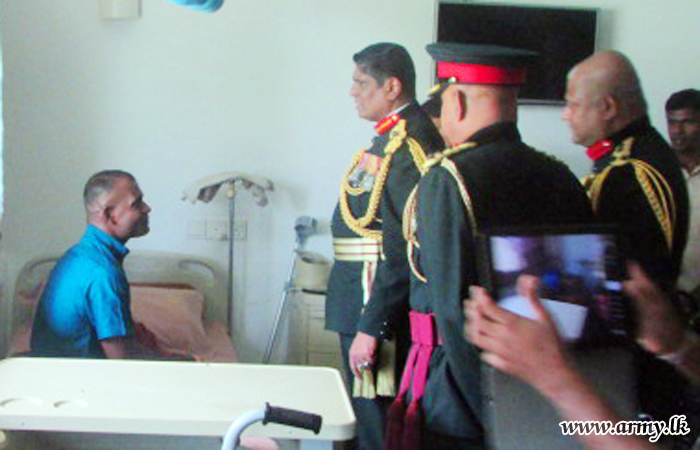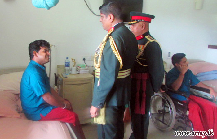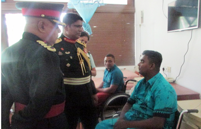 Colonel H.M.N.B Hearath Commandant 'Abimansala - 1' Anuradhapura welcomed Major General Piyal Wickramaratne and other Senior Officers on arrival and conducted them to the main auditorium. Afterwards, the visiting Major General Piyal Wickramaratne inquired into daily routine of those War Heroes and measures taken to look after them. This wellness resort is now the permanent home for about 50 permanently disabled War Heroes.