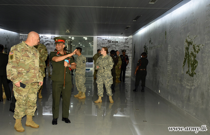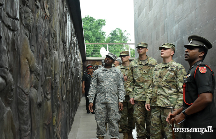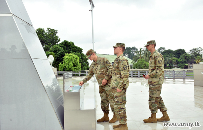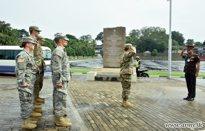 Colonel Anura Dissanayake, Deputy Centre Commandant, SLLI extended a warm welcome to the visiting USA cadets and took them at first to see the SLLI's ‘Abhiman Mudunata’ state-of-the-art memorial where they paid homage to the War heroes who sacrificed their lives for the sake of the motherland.