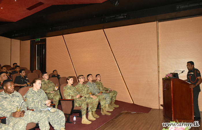 A panel of SLLI Officers, Colonel M.G.A. N.B Mahathuwakkara, Colonel S.D Udayasena, Lieutenant Colonel G.A.D.K.G Ganegoda, Lieutenant Colonel W.K.S.P.M.R.A.B Dodamwala, Major H.N.M.B. Gunarathne, Major M.A.A.P Perera and Major H.A.J. Arachchi educated those US cadet officers during the presentation.