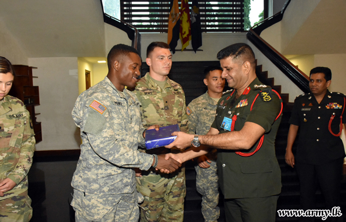 A team of 11 cadets of the US armed forces on a familiarization tour in Sri Lanka called at the Regimental Headquarters of the Sri Lanka Light Infantry (SLLI) on Thursday (24).