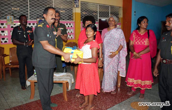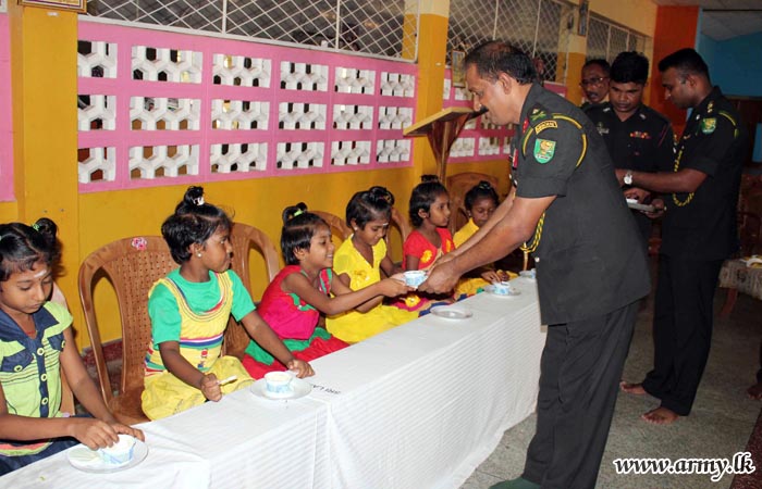 Troops of the 61 Division Headquarters in Vavuniya organized a one more community welfare project to distribute essentials among orphans at Anpakam Hindu Children’s home in Veppankulam, Vavuniya on account of the 10th Anniversary of the 61 Division on Saturday (26).