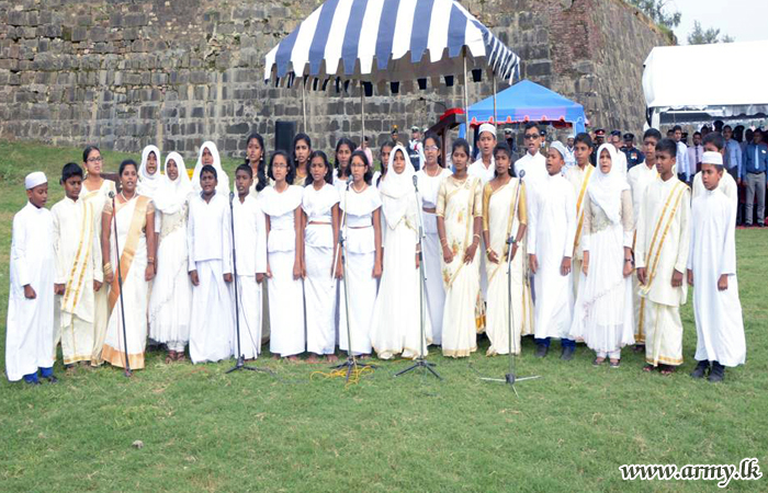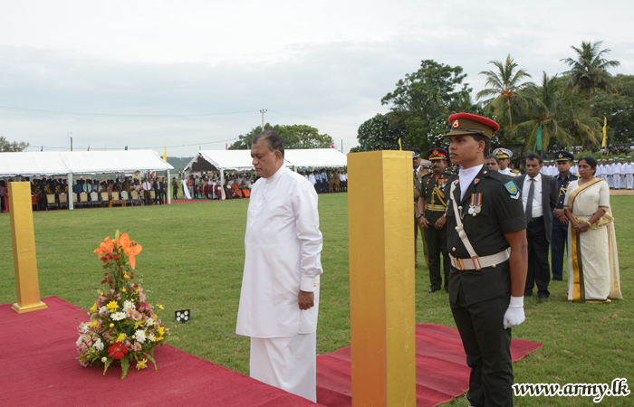 The day’s event during the War Heroes' month commenced with the hoisting of the National Flag by the Governor of the Eastern province, Hon Rohitha Bogollagama. Thereafter, recital of the national anthem was conducted by 20 students, representing five schools in Trincomalee before a two-minute silence was observed in memory of patriotic War Heroes who made the supreme sacrifice with their valuable lives, sweat and blood in defence of the Motherland. The religious performances were performed by clergy of Buddhist, Hindu, Islamic and Christian faiths.