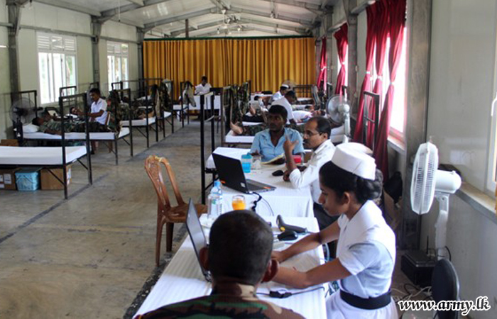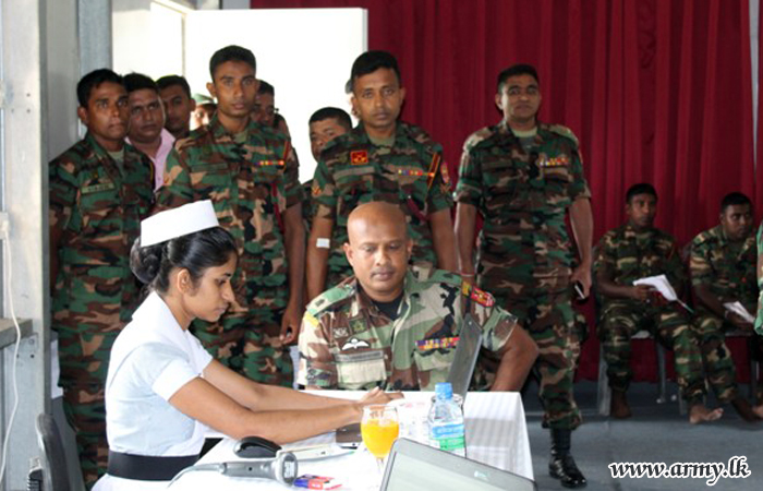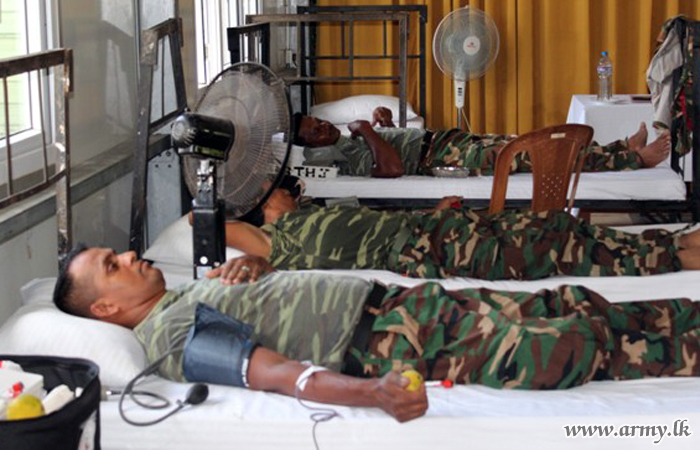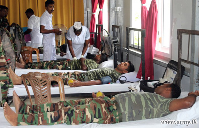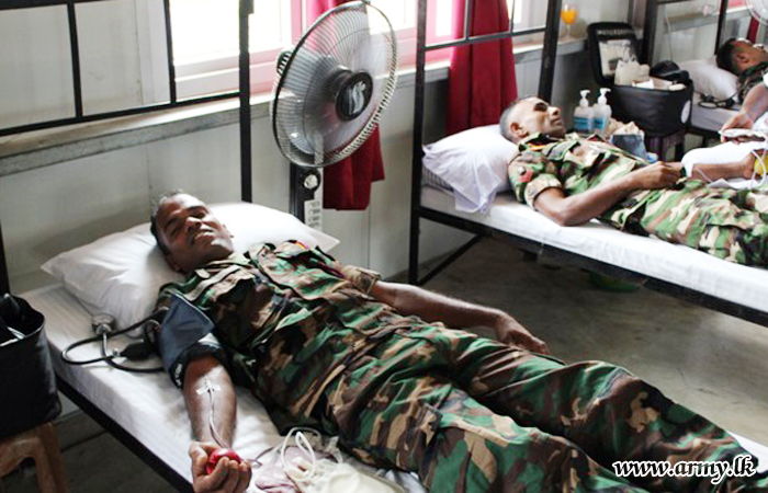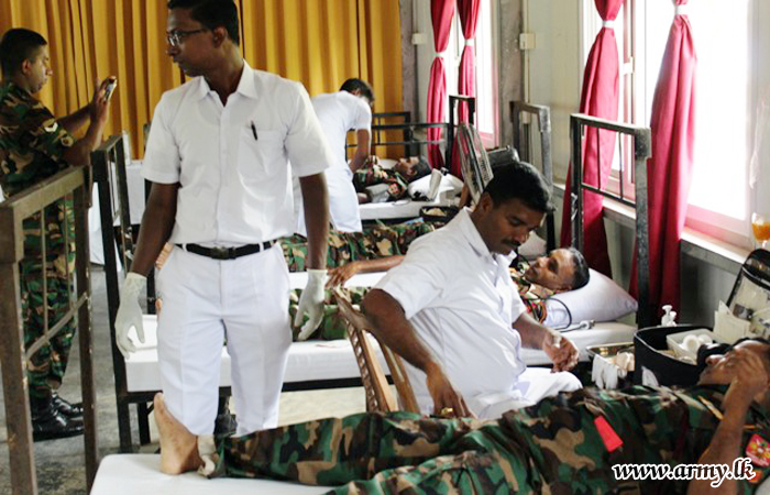 10 (V) Vijayabahu Infantry Regiment (VIR) troops of the Security Force Headquarters - Jaffna (SFHQ-J) on account of their 24th anniversary launched a blood donation camp for the benefit of patients at the Jaffna Teaching Hospital on Thursday (24) at their battalion Headquarters premises in Maradankerni.