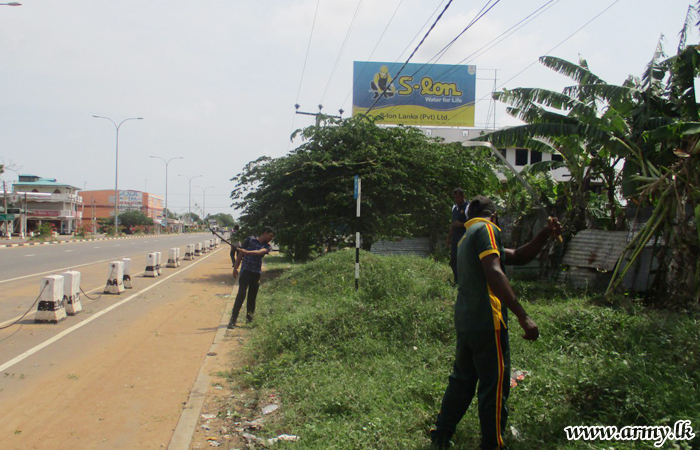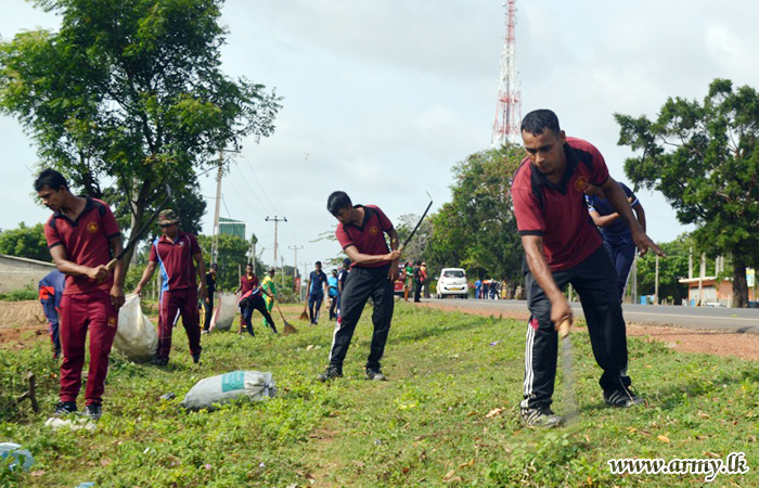 More than 350 Army personnel from 7 SLLI, 4 SLSR, 9 VIR and 16 (V) SLLI troops of the 57 Division assisted the cleaning of Kilinochchi town and the area in between 238th mile post and the 254th mile post along the A-9 road.