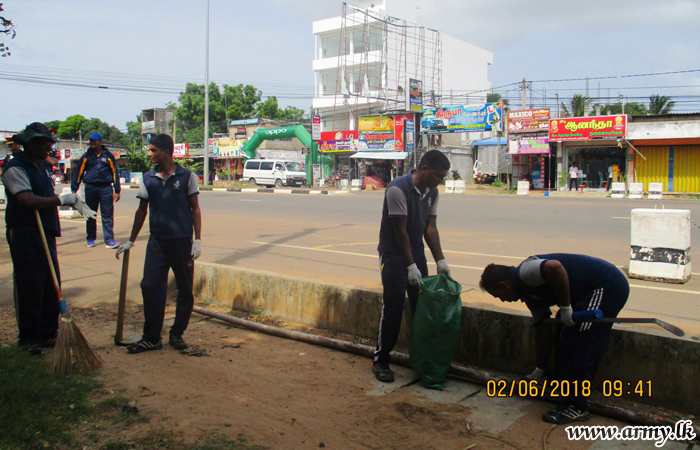 In the meantime, troops serving the 571 and 574 Brigades of the Security Force Headquarters - Kilinochchi (SFHQ-KLN), together with members of the civil community in the area launched a ‘Shramadana’ campaign and cleaned the Kilinochchi township on Saturday (2) to mark the World Environment Day & National Environment Week.