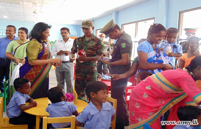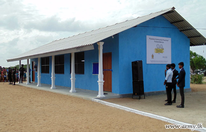 Troops of the 541 Brigade constructed this preschool under the supervision of Brigade Commander 541 Brigade, Colonel K.R.K.K.T Bandara.