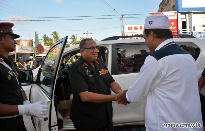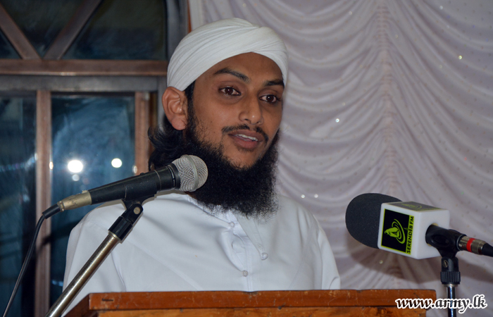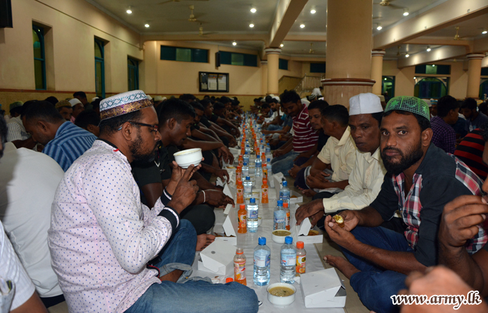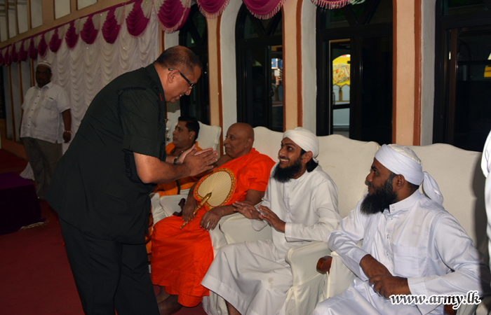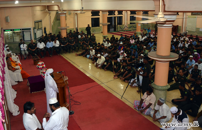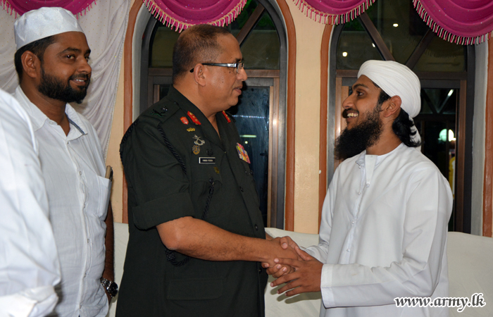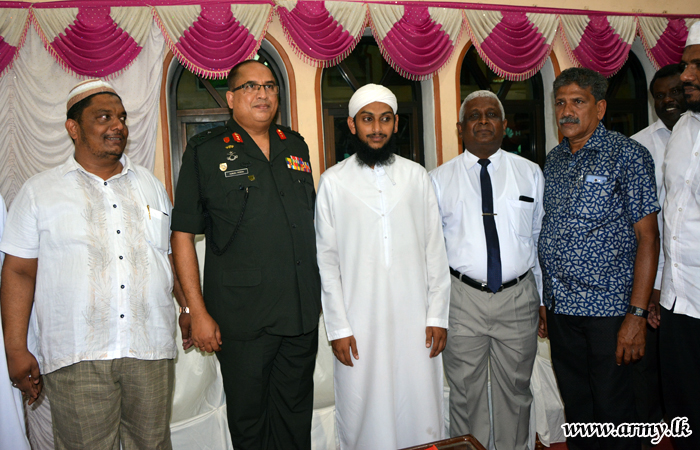 Major General Kumudu Perera at the invitation of the mosque authorities made a brief speech to the occasion and spoke high of the ethnic unity.