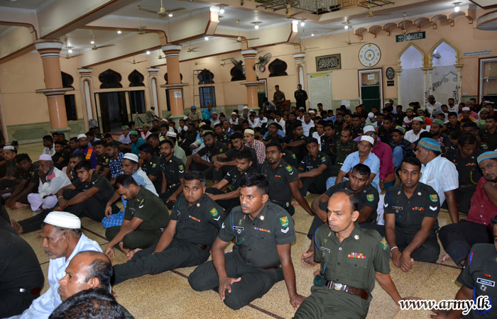 A special prayer session at Jumma Masjidh Mosque in Vavuniya to observe the breaking of the fast on Thursday (31) invited a representative group of Army personnel serving the Security Force Headquarters - Wanni (SFHQ-W).