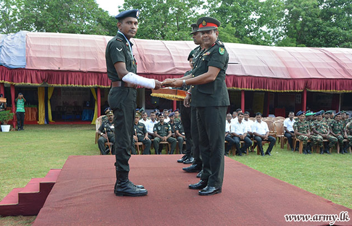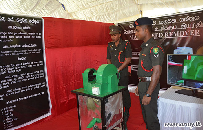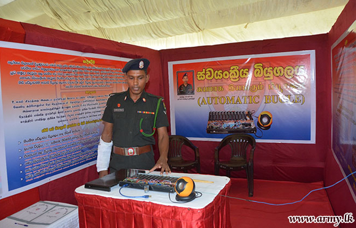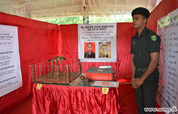 The first place was awarded to Rifleman W.B.G.C.D Rathnayake of the 17 Sri Lanka Sinha Regiment for his Electric Fence to prevent Elephants’ approaches while second and third places were given to Engineer Soldier B.G Udaya Kumara from 9 Engineers Services Regiment for his innovation of Multipurpose Iron Bending Machine and Lance Corporal U.G.W.M.D.B Jayathilaka from 15 Gamunu Watch for his innovation of Automatic Bugle respectively.