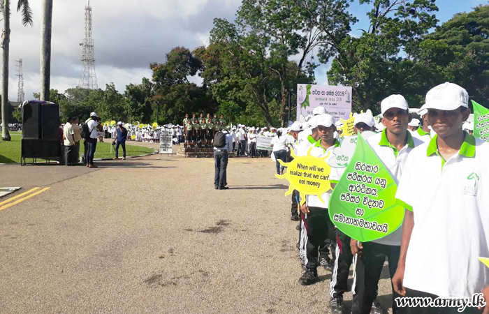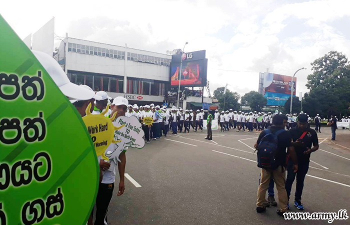 More than 50 Army troops of the 14 Division under the Security Force Headquarters - West (SFHQ-West) gave their contribution to a specially organized ‘Green Walk Pada Yathra’ in Colombo on Saturday (9).