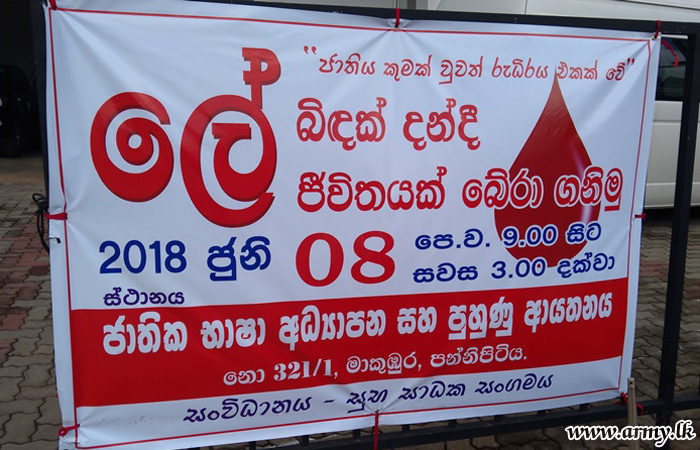 Responding positively to the request of the National Institute of Language Education and Training (NILET) of the Ministry of National Coexistence, Dialogue and Official Languages, the Security Force Headquarters - West (SFHQ-West) supported the conduct of a blood donation campaign at its training centre in Makumbura, Pannipitiya on Friday (8).