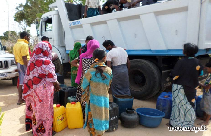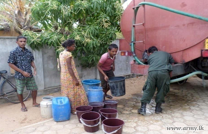 Army troops are still continuing the relief operation by supply of drinking water to those affected areas using own Army bowsers under the careful supervision of Colonel Upul Weerakoon, 242 Brigade Commander.