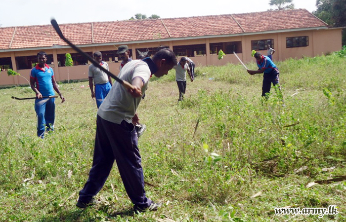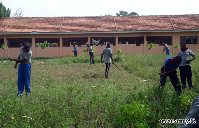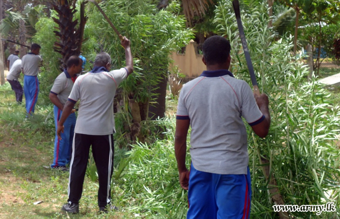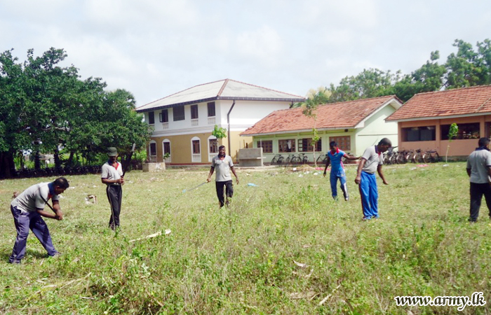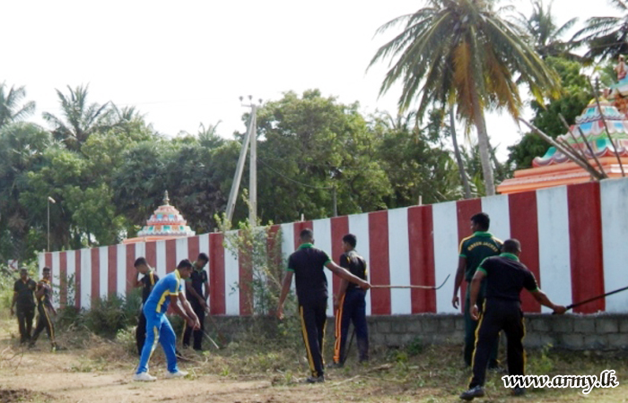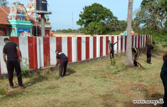 15 (V) Sri Lanka Sinha Regiment (SLSR) of the 651 Brigade assisted in cleaning the Pullayar Kovil premises while troops of the 7 Sri Lanka National Guard (SLNG) under the 652 Brigade cleaned the Akkaryankulam School premises and its surroundings.