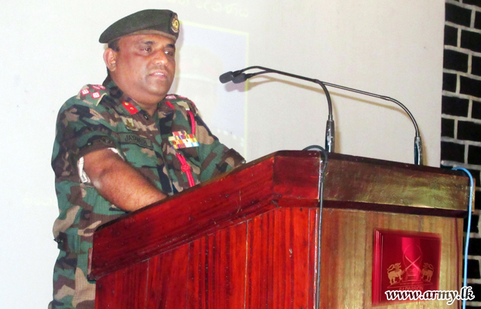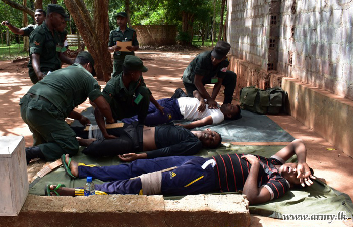 Lecture sessions focused on emergency relief roles during land, air, water or any other man-made disasters and precautionary measures in times of emergencies while placing stress on competence and trust worthiness. The programme implemented on a notion suggested by Major General Dushyantha Rajaguru, Commander, Security Forces - Mullaittivu was closely supervised by Brigadier Jayanath Jayaweera, General Officer Commanding, 64 Division. Brigadier Kithsiri Liyanage, 642 Brigade Commander organized the event with the help of relative Divisions.