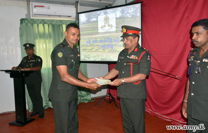 641 Brigade Headquarters was adjudged as the best crop cultivation while the second and third places went to the 14 Sri Lanka Sinha Regiment (SLSR) and 6 (V) Military Intelligence Corps (MIC) troops who also have contributed to the programme in an impressive manner.
