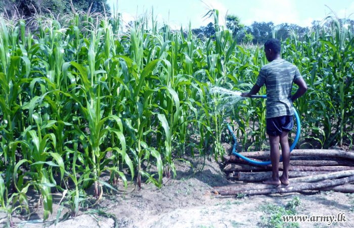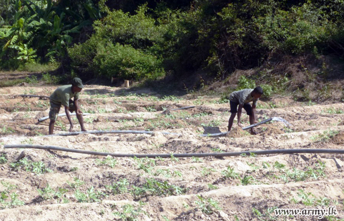 All troops in Divisions, Brigades, Units and the Forward Maintenance Area - Mullaittivu (FMA - MLT) of the Security Force Headquarters - Mullaittivu (SFHQ-MLT) throwing their weight behind the ongoing National Food Production Campaign, ‘Api Wawamu - Rata Nagamu’ enthusiastically participated in a crop cultivation competition, held in close collaboration with the Department of Agriculture & Livestock in Mullaittivu District.