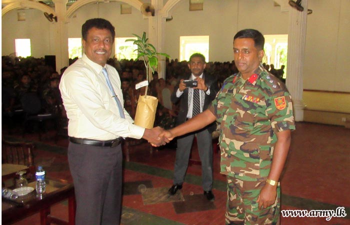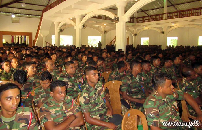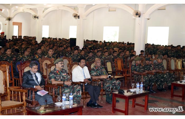 Around 50 Officers and 1200 Other Ranks serving the Security Force Headquarters – Kilinochchi (SFHQ-KLN) listened to another productive lecture at Kilinochchi, Nelumpiyasa theater on character and personality building on Friday (22).