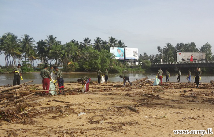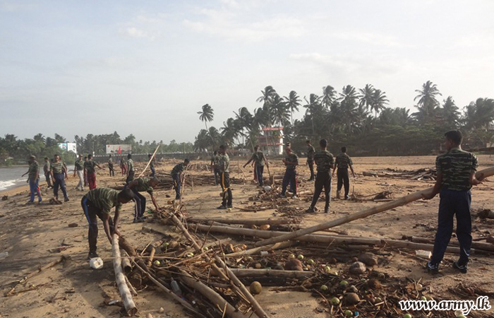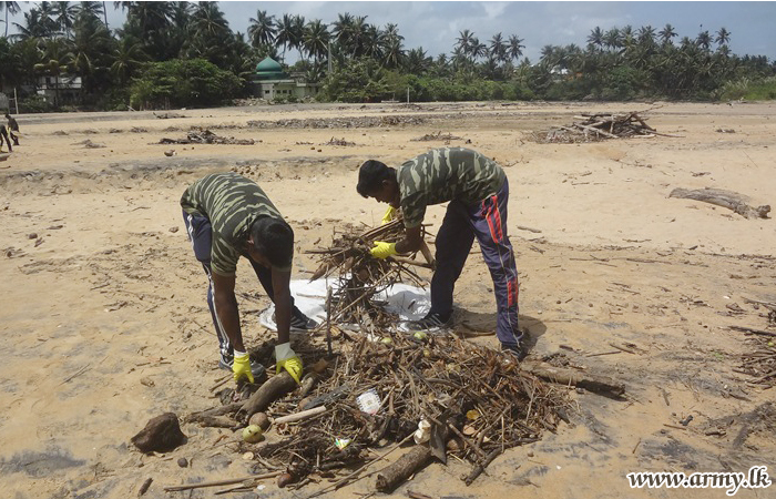 During the programme, 58 Division troops cleaned the area covering the entire beach front in Gingtota, Galle.