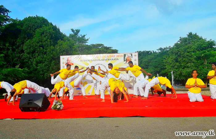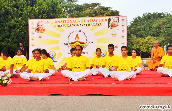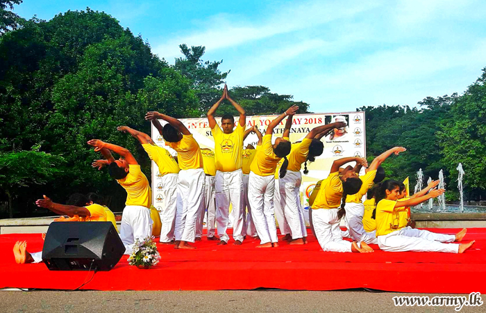 Troops of the 14 Division under the Security Force Headquarters - West (SFHQ-West) on the directions of Major General Sathyapriya Liyanage, Commander, Security Forces - West took part in the programmes, held in connection with the International Yoga Day.