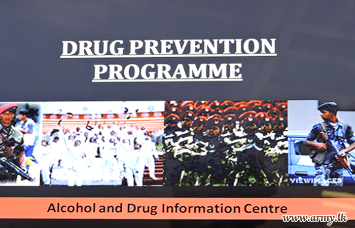 In order to educate Army personnel on dangers of drugs and prevention of its use, troops of the 11 Division of the Security Force Headquarters - Central (SFHQ-Cen) organized a lecture session at the Sri Lanka Military Academy’s Torch Cinema hall on Monday (2).