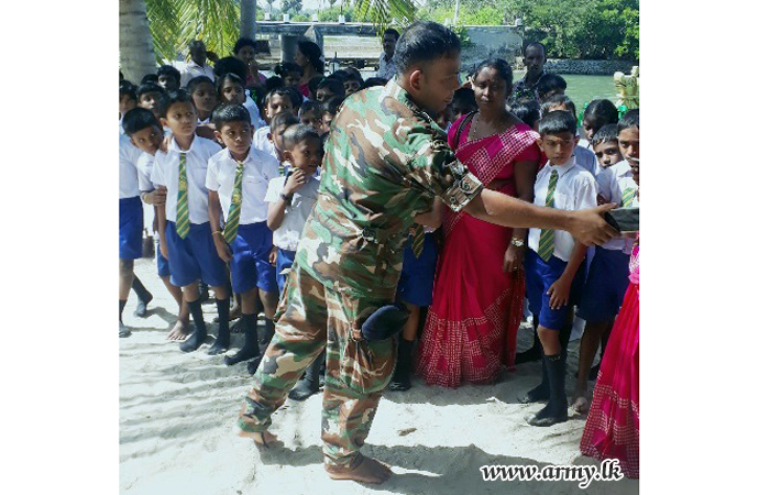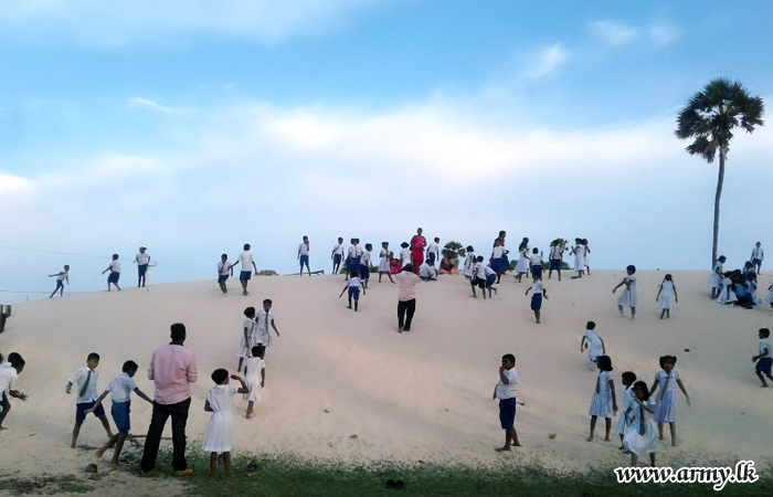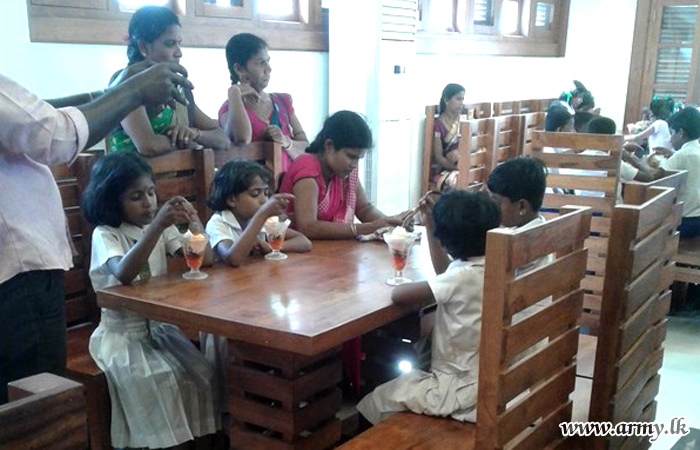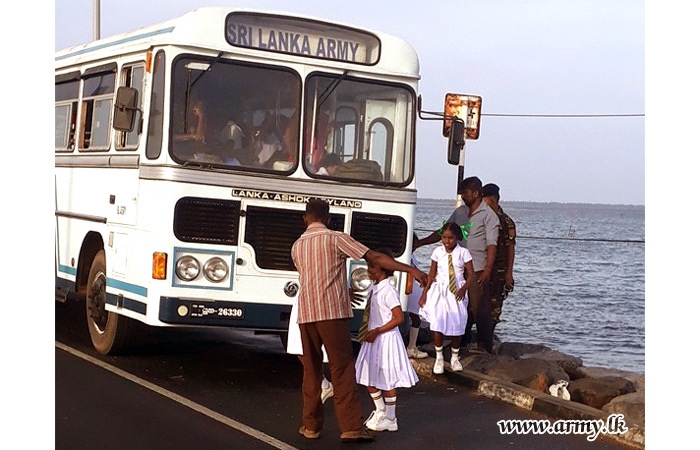 Sri Lanka Light Infantry (SLLI) Battalion troops under command to the 662 Brigade of the 66 Division of the Security Force Headquarters - Kilinochchi (SFHQ-KLN), considering economic hardships of the families of students at Mudkompan Maha Vidyalaya in Pooneryn, recently, made arrangements to take a group of students on an educational tour to areas of tourist interest in the North.