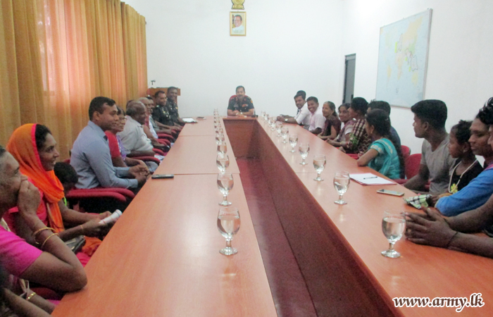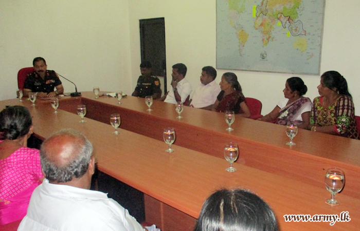 The group, representing Tamil, Muslim and Sinhala communities exchanged views with Major General Vijitha Ravipriya, General Officer Commanding (GOC), 57 Division and presented their grievances.